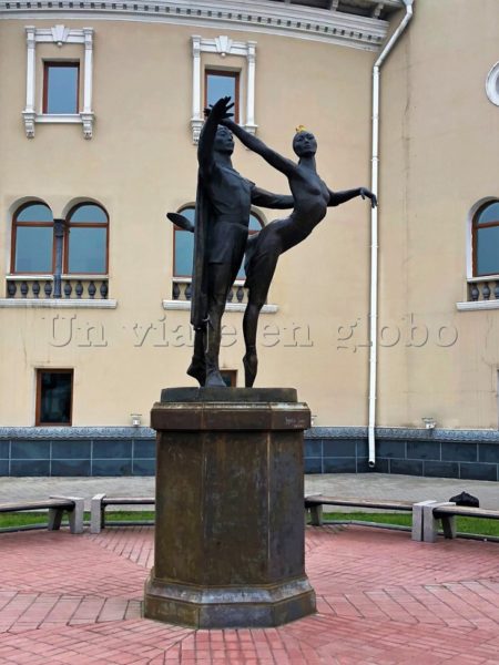 En la entrada está la estatua de los esposos Larisa Sakhyanova y Peter Abasheev, grandes maestros del ballet. La estatua se llama «Belleza Angara» y representa a la pareja bailando.