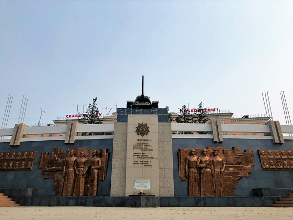 Si siguen caminando por la calle Ulitsa Kirova, llegaran a la avenida Ulitsa Baltakhinova, justo enfrente encontramos el hermoso parque de la memoria que rinde homenaje a los muertos en batalla.