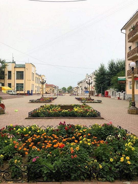 La peatonal Arbat concentra la mayoría de los comercios en Ulan Ude. La peatonal está hermosamente decorada con canteros ccon flores y bancos en donde podes sentarte y descansar.
