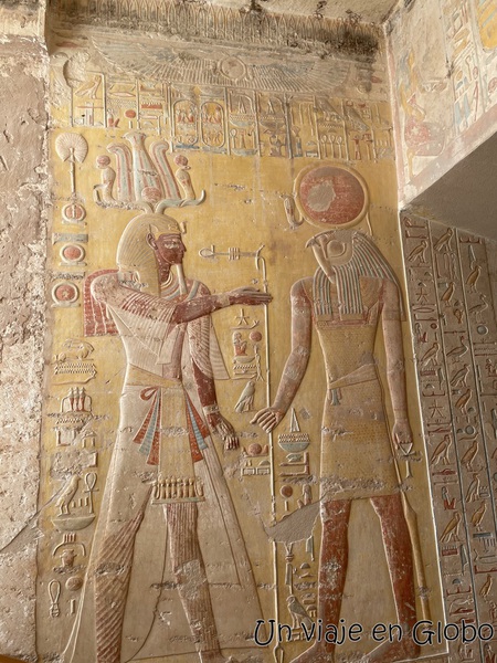 La tumba del hijo de Ramsés I es la mas larga y profunda del valle de los reyes. Tiene todas las estancias decorados con espectaculares bajo-relieves que aun conservan los colores.