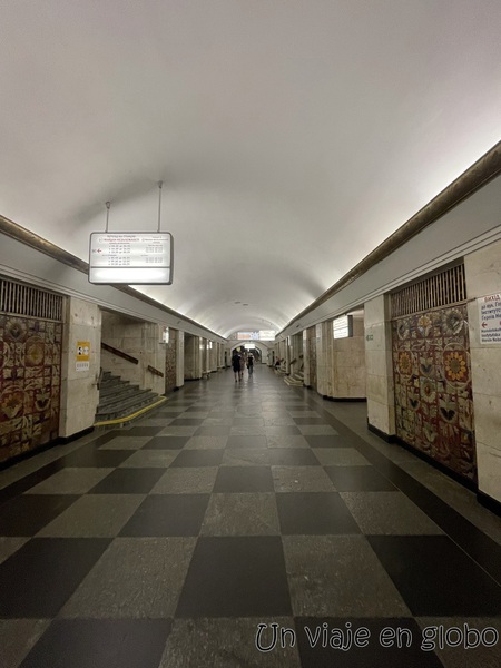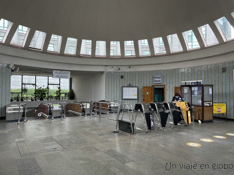 Las estaciones del metro de Kiev son más pequeñas que lo que seguro están acostumbrados a ver. Para acceder hay que tomar una larga escalera que nos lleva hacia el corredor principal.