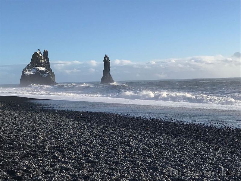 Las playas de arena negra producto del material volcánico son un imprescindible qué ver en Islandia. La zona posee una parte de la playa formada por arena negra y otra parte (donde la corriente es mayor) formado por cantos rodados negros. Dentro del mar se pueden ver picos o cuellos de basaltos que formaron parte de antiguos volcanes hoy erosionados por el oleaje.