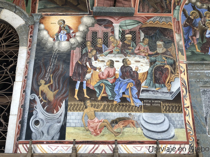La parte exterior de la iglesia está completamente cubierta por maravillosos frescos del siglo XIX que sin duda son lo más fotografiado del monasterio de Rila.