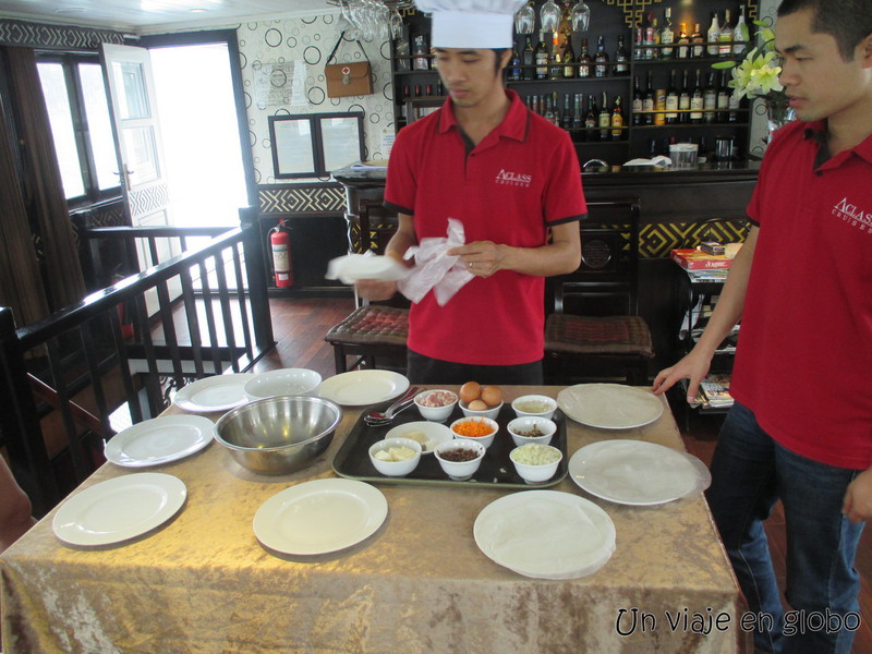 Luego de visitar las cuevas regresamos al crucero donde disfrutamos de una clase de cocina (incluida en el precio del crucero) y de una cena de 7 platos.