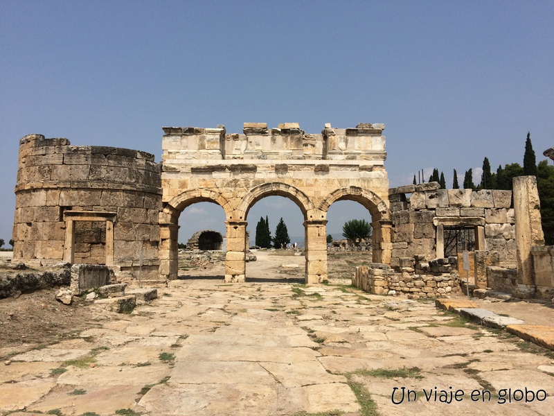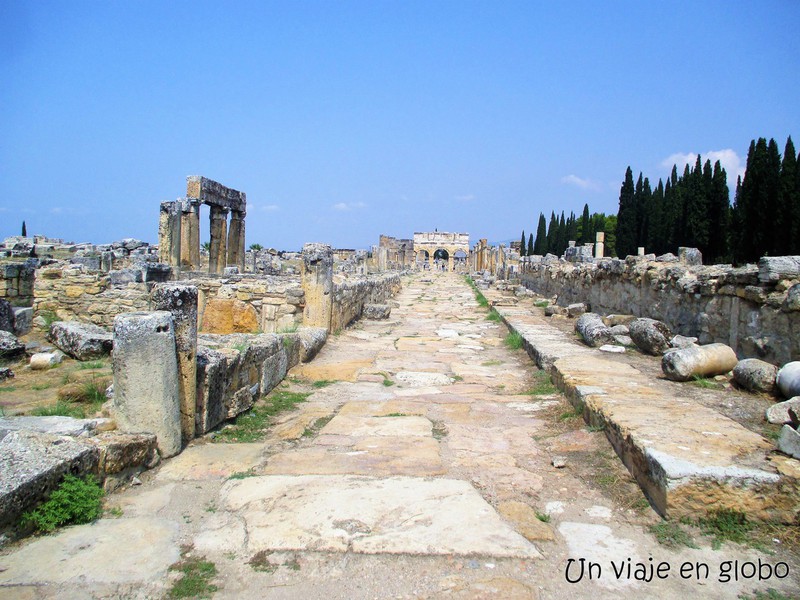 La norte: a 2,5 km de Pamukkale, se ingreso por la Necrópolis de Hierápolis.