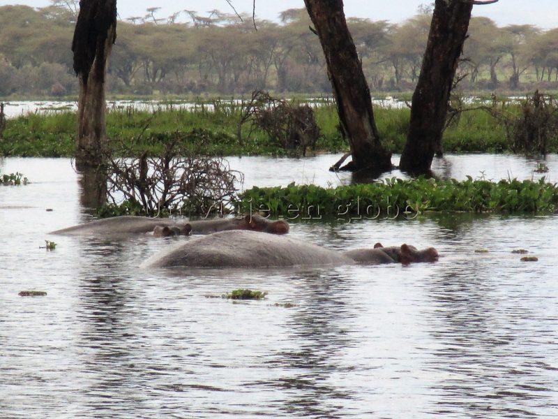 El lago es el hogar de cientos de hipopótamos que parecen estar muy tranquilos durmiendo. Los hipopótamos son uno de los animales más peligroso de África, son muy agresivos y en el agua se mueven rápidamente, por lo que hay que ser precavidos y observarlos desde lejos.