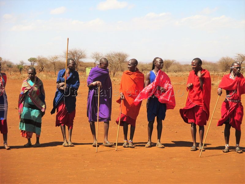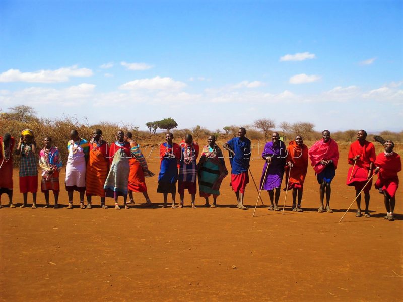 Próximo destino Amboseli. Este sería un día muyyyyy largo….. 446km que se recorren en 8 horas y 20 minutos, así que nos levantamos bien temprano desayunamos y partimos hacia Amboseli. En el camino paramos para visitar una comunidad Masái que nos recibió muy alegremente con un baile típico que consiste en que todos saltan como si fueran palitos, algunos realmente saltan muy alto.